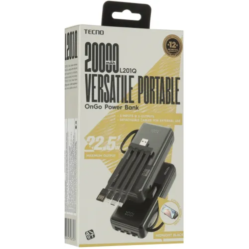 Мобильный аккумулятор Tecno Pocket L201Q 20000mAh QC3.0/PD 22.5W 3A USB-A/2xUSB-C черный (L201Q)