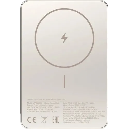 Мобильный аккумулятор Xiaomi Super Slim Magnetic 5000mAh QC3.0/PD3.0 22.5W 3A USB-C беспров.зар. золотистый (BHR08PLGL)