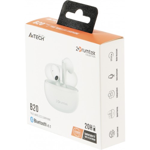 Гарнитура вкладыши A4Tech 2Drumtek B20 TWS белый беспроводные bluetooth в ушной раковине (B20 GRAYISH WHITE)
