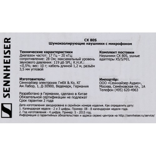 | Описание | Комфортный звук: проводные наушники CX 80S от Sennheiser отличаются комфортом при прослушивании, элегантным дизайном и качеством сборки. Они генерируют естественный сбалансированный звук с ровной отдачей во всём диапазоне частот. |