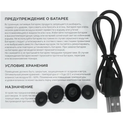 | Тип элементов питания (наушники) | встроенный аккумулятор |