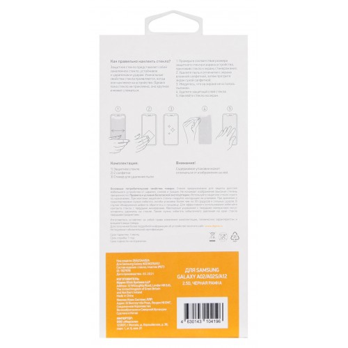 Защитное стекло для экрана Digma 2.5D черный для Samsung Galaxy A02/A02s/A12/A03s 2.5D 1шт. (DGG2SAA02A)