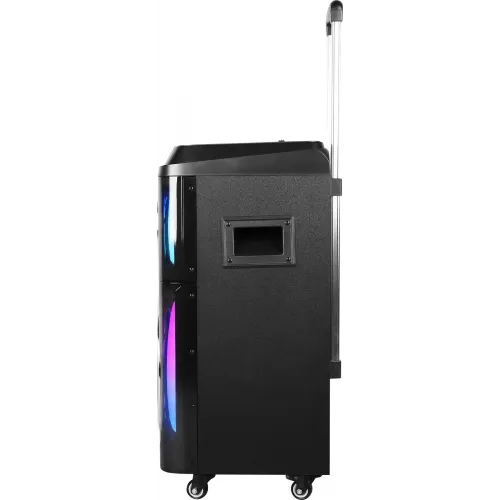 | Комплектация | Портативная аудиосистема, 1 беспроводной микрофон, пульт дистанционного управления, кабель питания 220 В, руководство по эксплуатации, гарантийный талон, упаковка, фирменные стикеры, крепление для кейса с аксессуарами , кейс с аксессуарами |