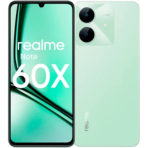 Смартфон Realme RMX3938 Note 60х 64Gb 3Gb зеленый моноблок 3G 4G 2Sim 6.74" 720x1600 Android 14 8Mpix 802.11 a/b/g/n/ac GPS GSM900/1800 GSM1900 A-GPS microSD max2048Gb
