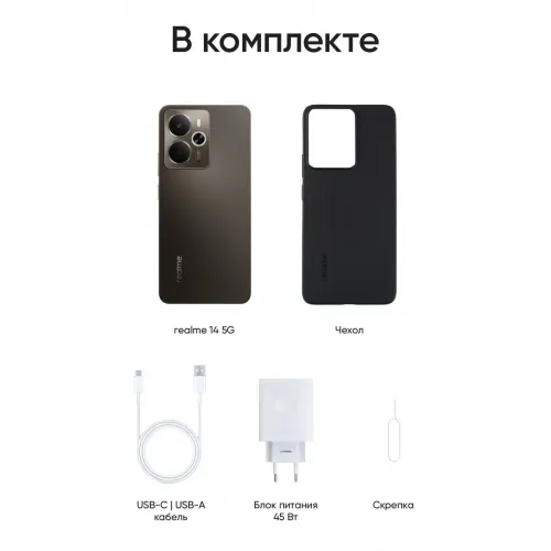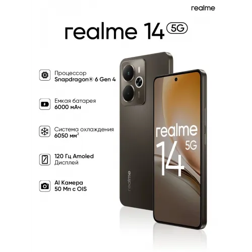 Смартфон Realme RMX5070 14 5G 256Gb 8Gb черный моноблок 3G 4G 2Sim 6.67" 1080x2400 Android 15 50Mpix 802.11 a/b/g/n/ac/ax NFC GPS GSM900/1800 GSM1900 Protect