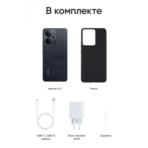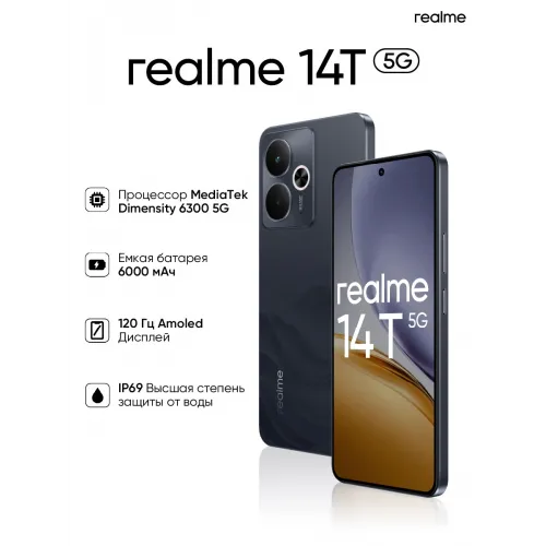 Смартфон Realme RMX5078 14T 5G 256Gb 12Gb черный моноблок 3G 4G 2Sim 6.67" 1080x2400 Android 15 50Mpix 802.11 a/b/g/n/ac NFC GPS GSM900/1800 GSM1900 Protect