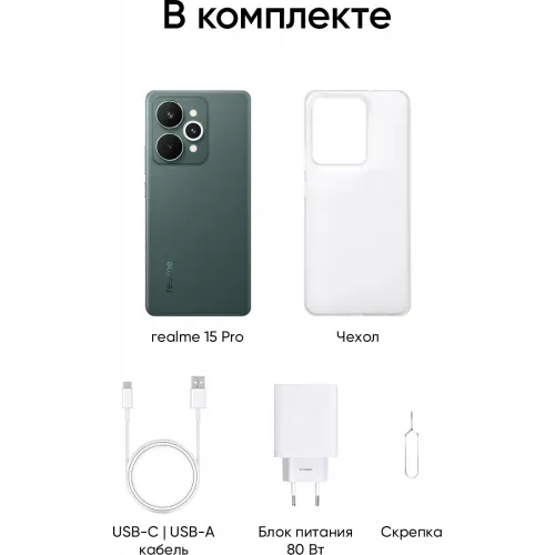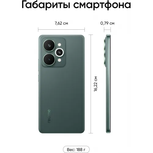 Смартфон Realme RMX5101 15 Pro 256Gb 8Gb зеленый моноблок 3G 4G 6.78" 1264x2780 Android 15 50Mpix 802.11 a/b/g/n/ac/6 NFC GPS GSM900/1800 GSM1900