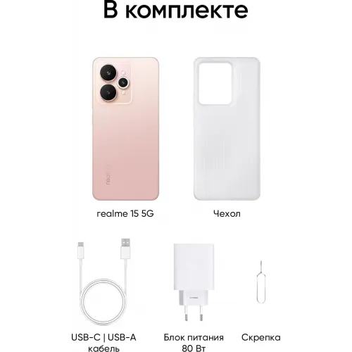 Смартфон Realme RMX5106 15 512Gb 12Gb розовый моноблок 3G 4G 6.78" 1264x2780 Android 15 50Mpix 802.11 a/b/g/n/ac/6 NFC GPS GSM900/1800 GSM1900