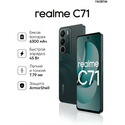 Смартфон Realme RMX5303 C71 256Gb 8Gb зеленый моноблок 3G 4G 2Sim 6.67" 720x1604 Android 15 50Mpix 802.11 a/b/g/n/ac NFC GPS GSM900/1800 GSM1900 FM
