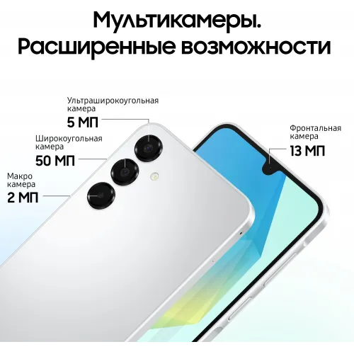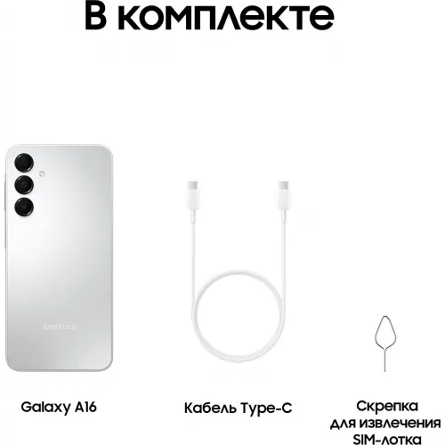 Смартфон Samsung SM-A165F Galaxy A16 128Gb 4Gb серебристый моноблок 3G 4G 2Sim 6.7" 1080x2340 Android 14 50Mpix 802.11 a/b/g/n/ac NFC GPS GSM900/1800 GSM1900 microSD max1024Gb