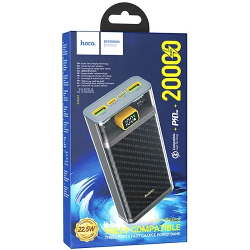 Мобильный аккумулятор Hoco J103A 20000mAh QC3.0/PD3.0 22.5W 5A 2xUSB-A/USB-C серый (88948)