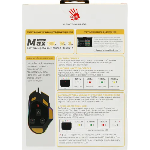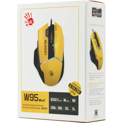 Мышь A4Tech Bloody W95 Max Sports желтый/серый оптическая 12000dpi USB 10but (W95 MAX SPORTS LIME)