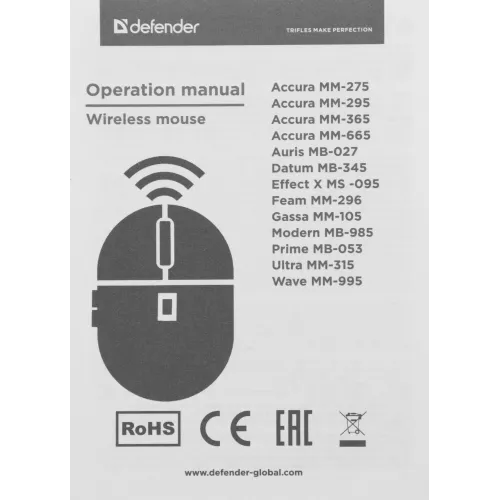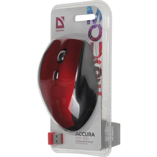 Мышь Defender Accura MM-365 красный оптическая 1600dpi беспров. USB 5but (52367)