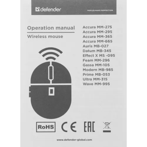 Мышь Defender Accura MM-665 черный оптическая 1600dpi беспров. USB 5but (52665)