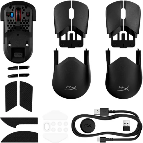 | Комплектация | HyperX Pulsefire Saga Pro, беспроводной USB-адаптер 4K, удлинительный адаптер, кабель HyperFlex 2 USB-C — USB-A, защитная лента, запасные накладки для мыши, две накладки на кнопки, две накладки, две пары боковых кнопок, краткое руководство пользователя |