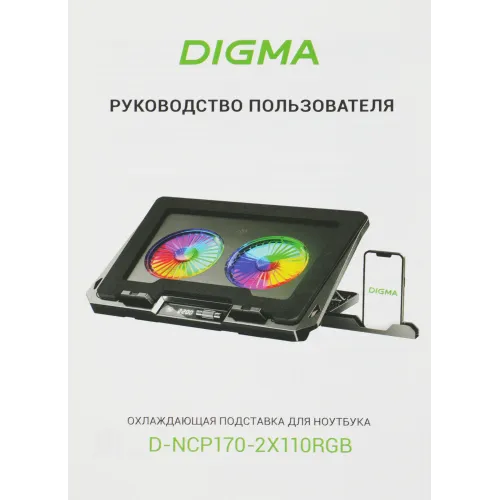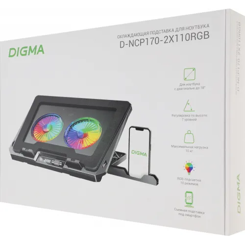 Подставка для ноутбука Digma D-NCP170-2x110RGB 18" 400x288x45мм 52дБ 2xUSB 2x 110ммFAN 1250г Fan-control металл/пластик черный
