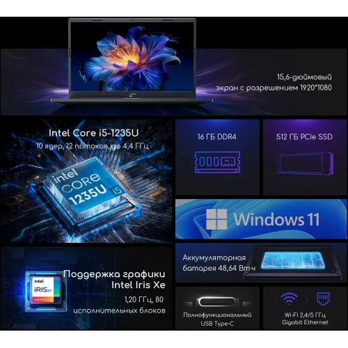 | Процессор | Intel Core i5 1235U 1.3ГГц |