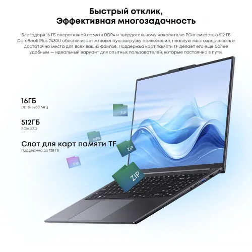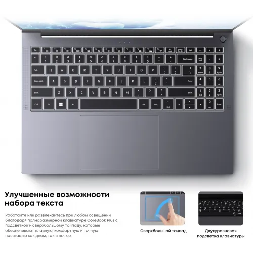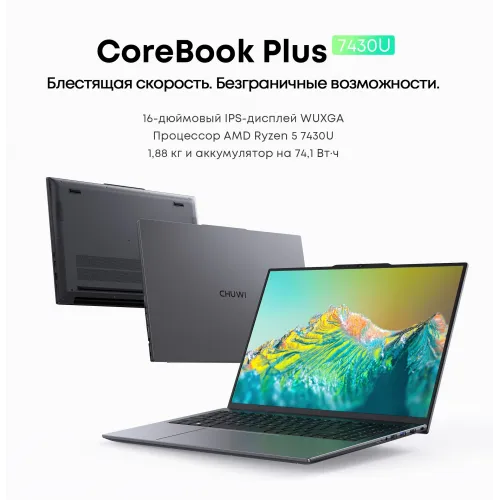 Ноутбук Chuwi Corebook Plus Ryzen 5 7430U 16Gb SSD512Gb AMD Radeon Graphics 16" IPS FHD (1920x1200) Windows 11 Home grey WiFi BT Cam 6500mAh
