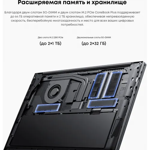 | Описание возможностей апгрейда | 2x M.2 2280 до 1 Тб каждый |