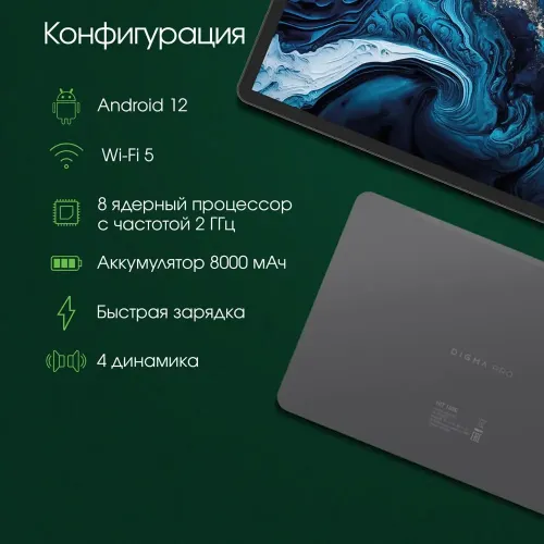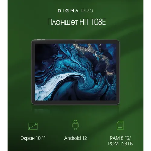 Планшет Digma Pro HIT 108E T616 (2.0) 8C RAM8Gb ROM128Gb 10.1" IPS 1920x1200 4G Android 12 серый космос 13Mpix 5Mpix BT WiFi microSD 1Tb 8000mAh