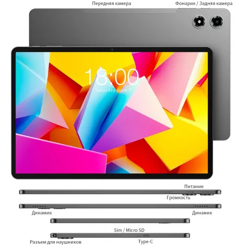 Планшет Teclast T50Plus Premium Set 2025 T7260 (2.2) 8C RAM8Gb ROM256Gb 10.95" IPS 1920x1200 Android 14 серый 13Mpix 8Mpix BT WiFi microSD 1Tb 8000mAh 15hr