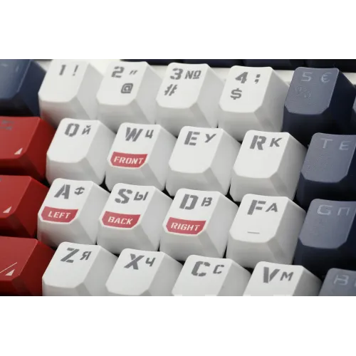 | Особенности | Свитчи с возможностью замены. 12 свитчей на замену в комплекте. Кейкапы двойного литья. |