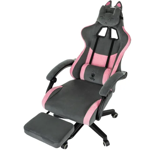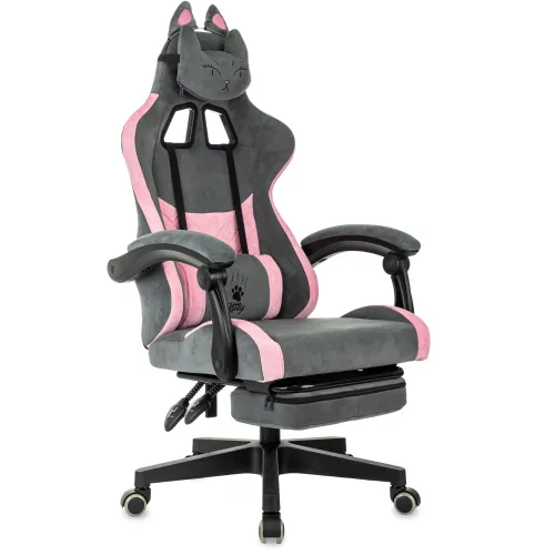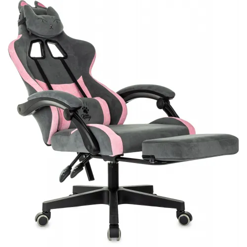 Кресло игровое Knight Kitty/F Fabric серый/розовый крестов. пластик подст.для ног