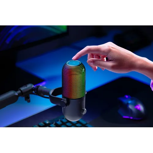 | Особенности | USB-микрофон профессионального уровня с непревзойденной настраиваемой RGB-подсветкой. Реагирующая на события трансляции подсветка и многофункциональный сенсор выключения звука касанием обеспечат вам необходимый контроль, чистоту звучания и уникальный стиль для игры, трансляций и общения. |