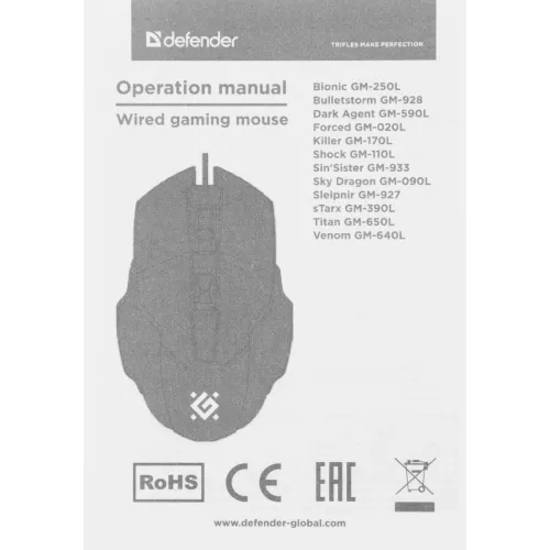 | Особенности | Программное обеспечение Defender Game Center. Редактор макросов. Эмуляция клавиш клавиатуры. Подставка под большой палец. Прочное, приятное на ощупь прорезиненное покрытие. Прорезиненное колесо прокрутки. |