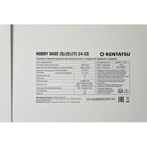 | Потребление природного газа (G20), макс./мин или макс., м3/ч | 0.95/0.86 |