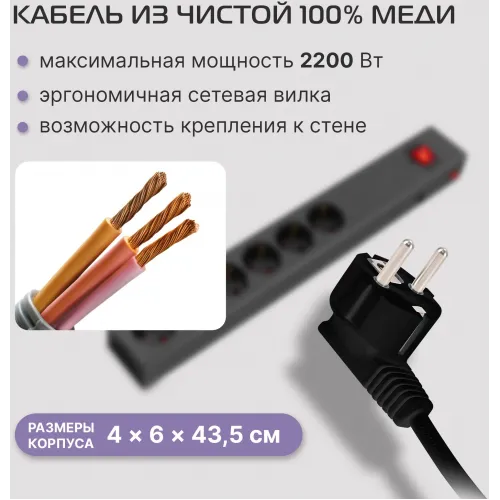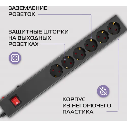 Сетевой фильтр Buro 600SE-3-B 3м (6 розеток) черный (коробка)