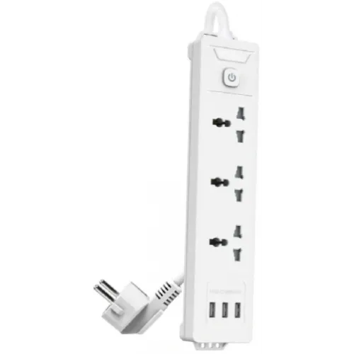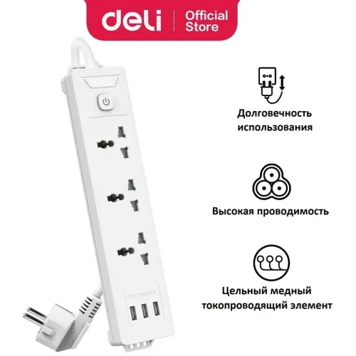 Сетевой фильтр Deli ET408 2м (3 розетки) белый (пакет ПЭ)