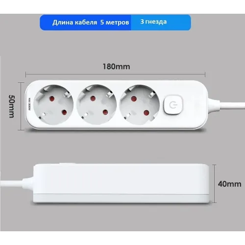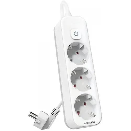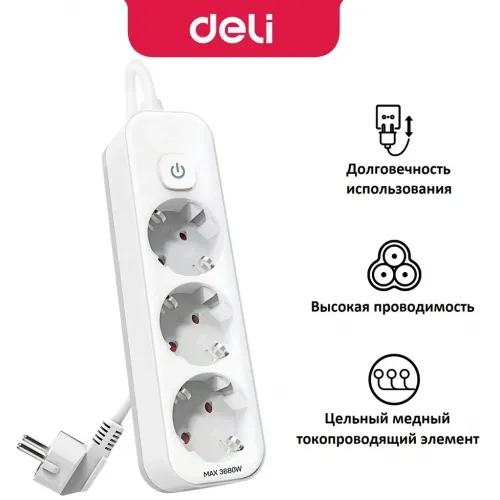 Сетевой фильтр Deli ET433 5м (3 розетки) белый (пакет ПЭ)