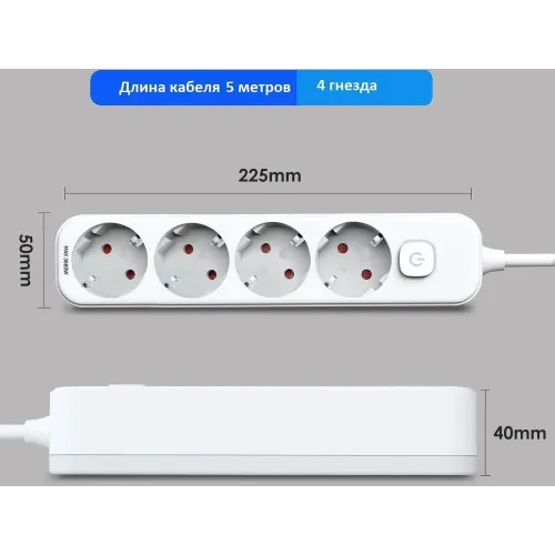 Сетевой фильтр Deli ET436 5м (4 розетки) белый (пакет ПЭ)