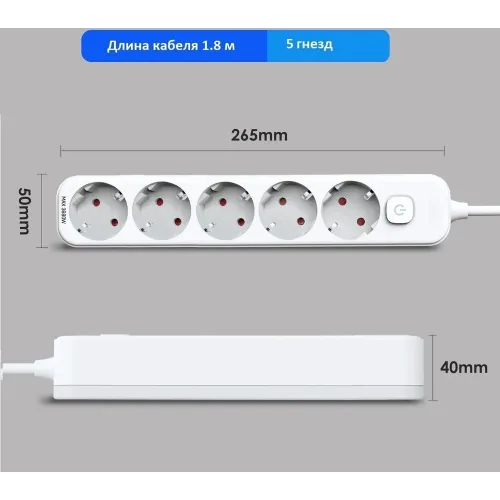 Сетевой фильтр Deli ET437 1.8м (5 розеток) белый (пакет ПЭ)