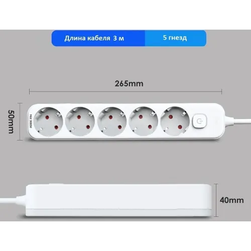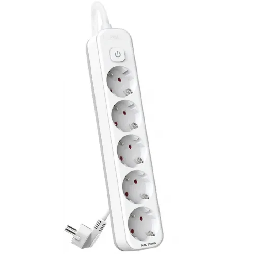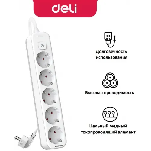 Сетевой фильтр Deli ET438 3м (5 розеток) белый (пакет ПЭ)