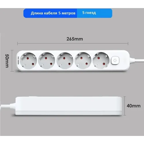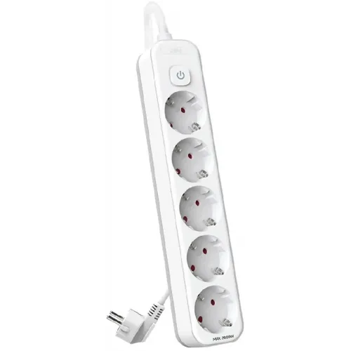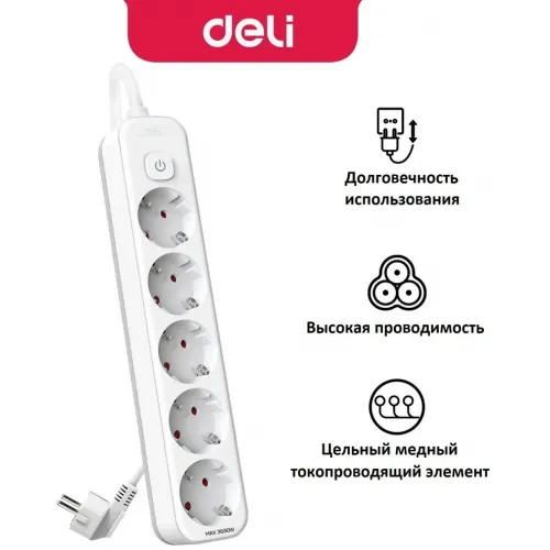 Сетевой фильтр Deli ET439 5м (5 розеток) белый (пакет ПЭ)