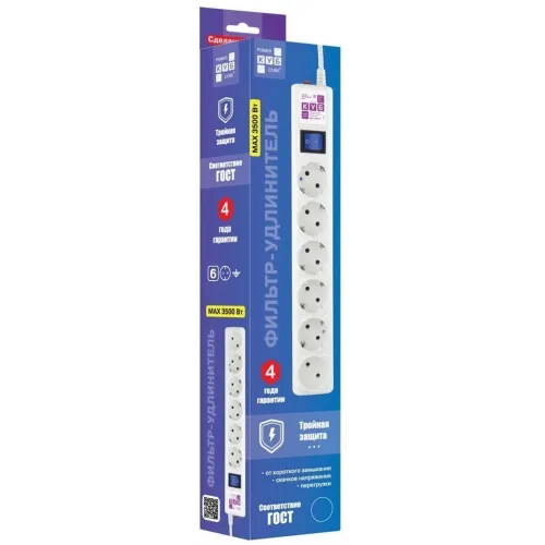 Сетевой фильтр Powercube SPG6-16-1,9M 1.9м (6 розеток) белый (коробка)