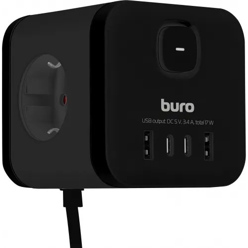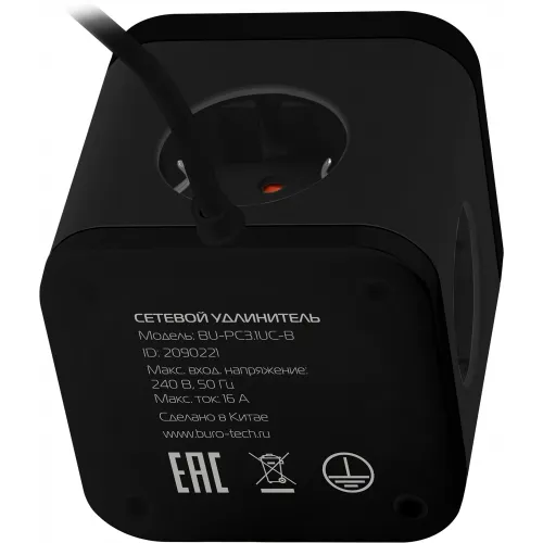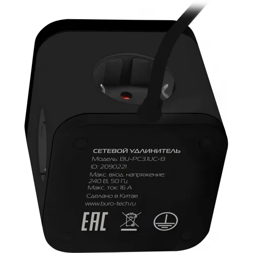 Сетевой удлинитель Buro BU-PC3.1UС-B 1.5м (3 розетки) черный (пакет ПЭ)