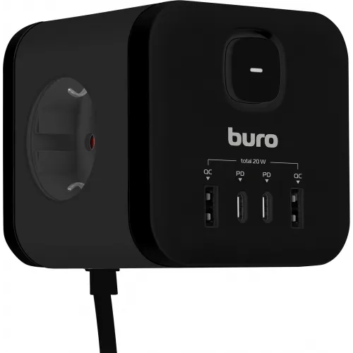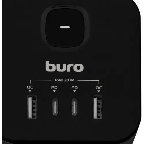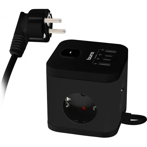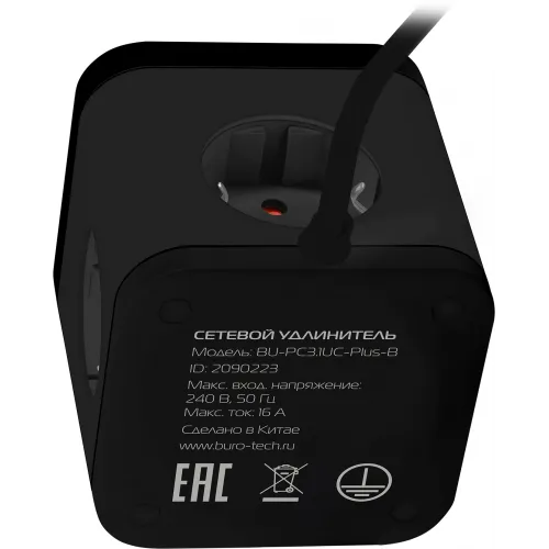 Сетевой удлинитель Buro BU-PC3.1UС-Plus-B 1.5м (3 розетки) черный (пакет ПЭ)