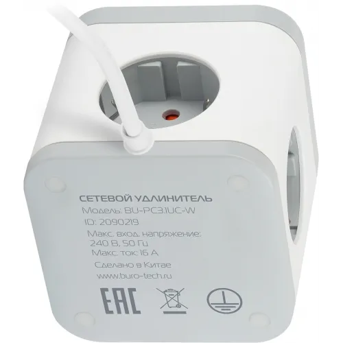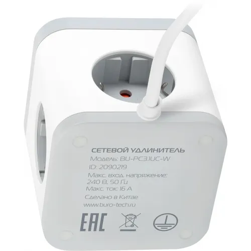 Сетевой удлинитель Buro BU-PC3.1UС-W 1.5м (3 розетки) белый (пакет ПЭ)
