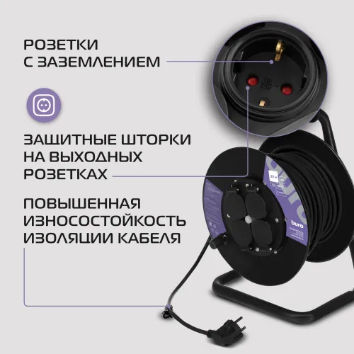 Сетевой удлинитель Buro BU-PSR4.30/FRG-20 30м (4 розетки) черный (коробка)