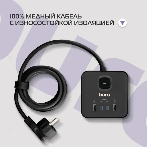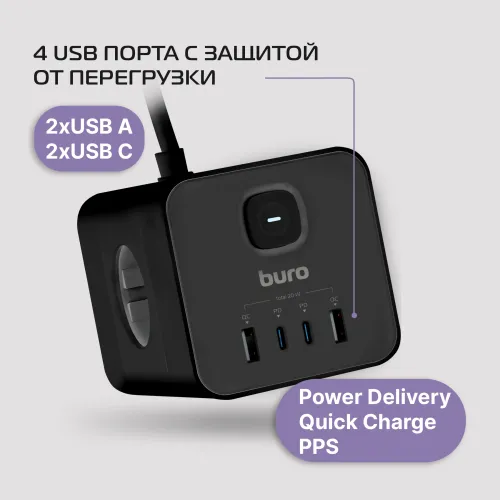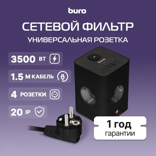 Сетевой удлинитель Buro BU-PTE4.1UC-Plus-B 1.5м (4 розетки) черный (пакет ПЭ)