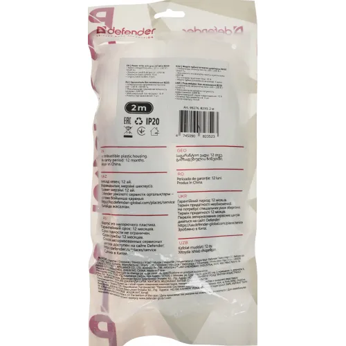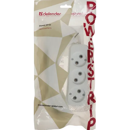 Сетевой удлинитель Defender B230 2м (3 розетки) белый (пакет ПЭ)