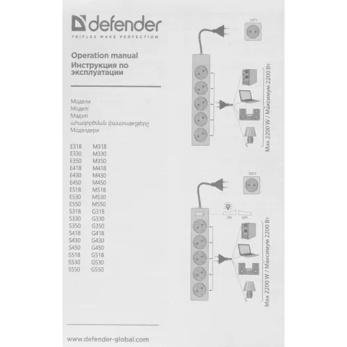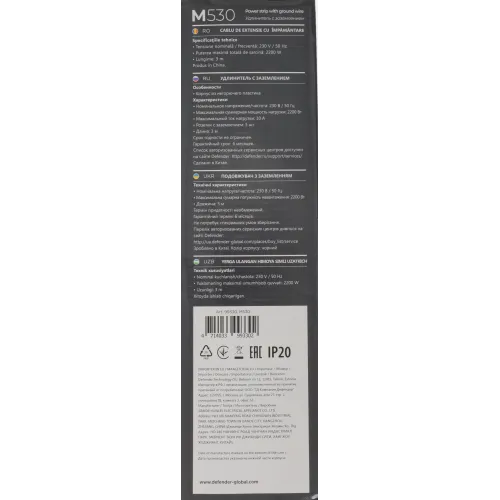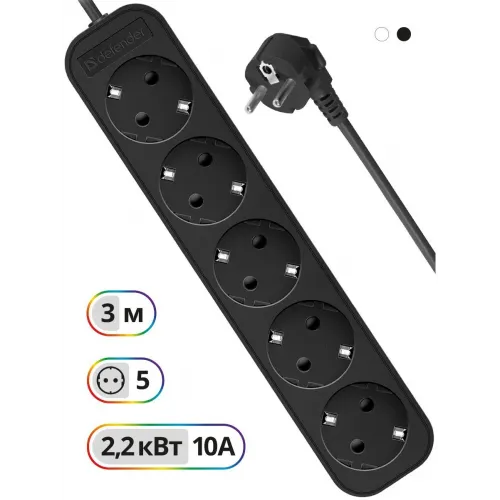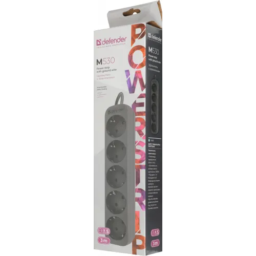 Сетевой удлинитель Defender M530 3м (5 розеток) черный (коробка)