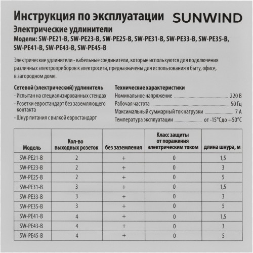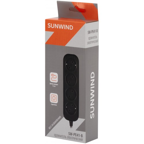Сетевой удлинитель SunWind SW-PE41-B 1.5м (4 розетки) черный (коробка)