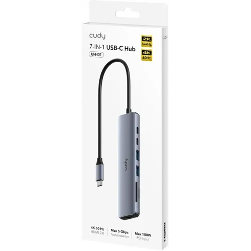 Разветвитель USB-C Cudy UH407 3порт. серебристый