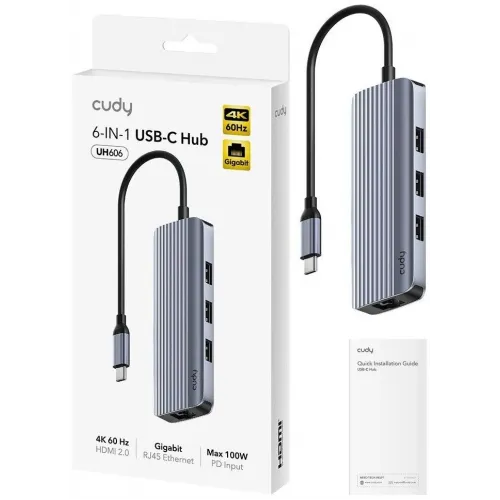 Разветвитель USB-C Cudy UH606 3порт. серебристый