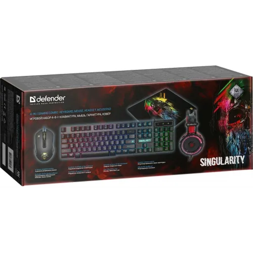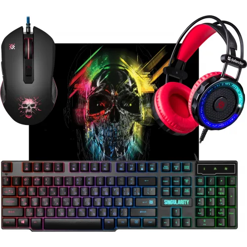 Комплект Defender MKP-118 (клавиатура, мышь, коврик для мыши, гарнитура) черный (52118)