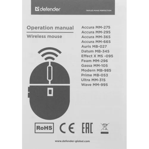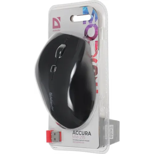 Мышь Defender Accura MM-295 черный оптическая 1600dpi беспров. USB 6but (52295)
